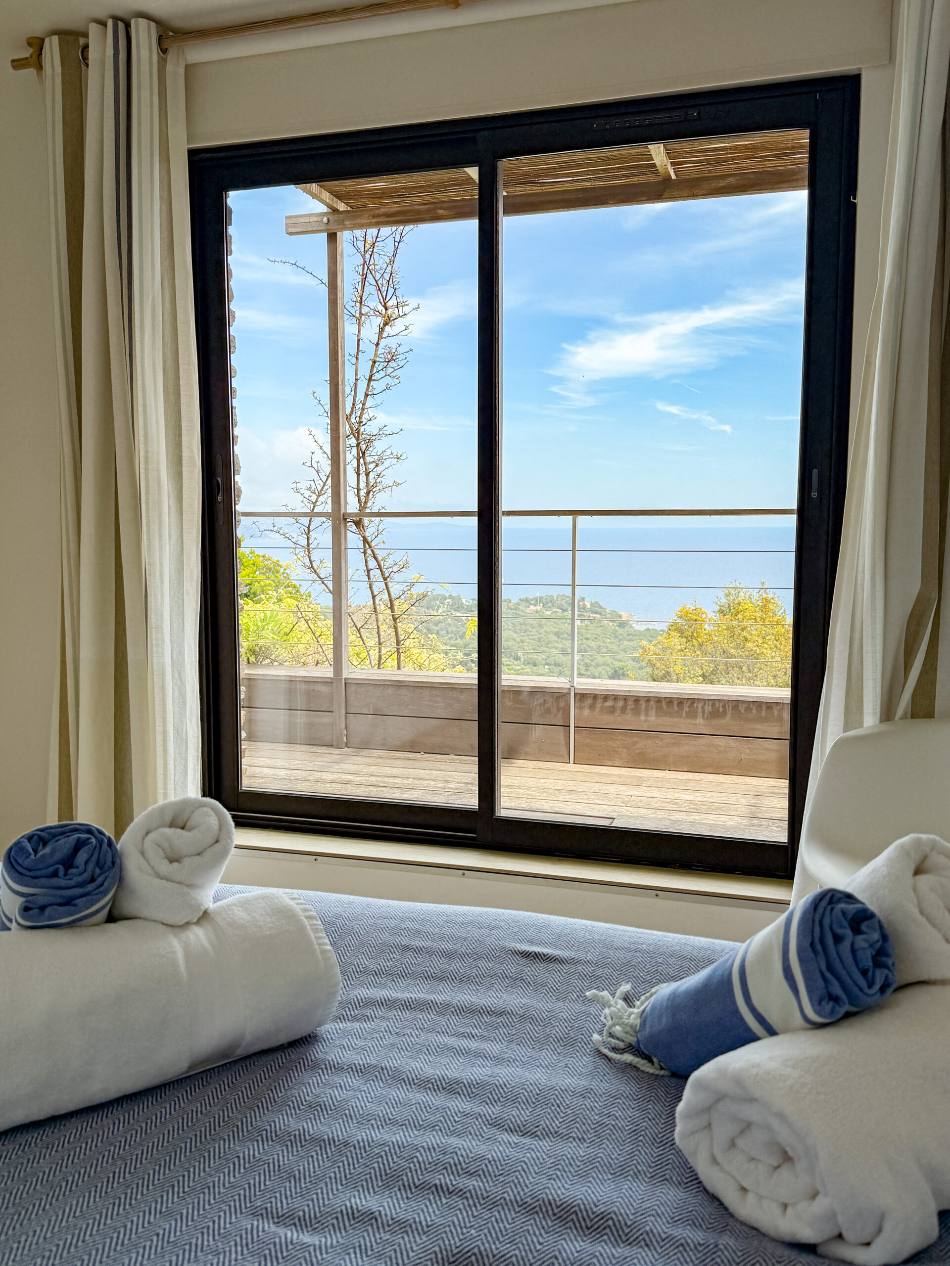 Découvrez la Villa Les Voiles au Gaou Bénat, une maison ouverte sur la mer, où terrasse, lumière et vue dégagée sur la Méditerranée rythment chaque moment de la journée.