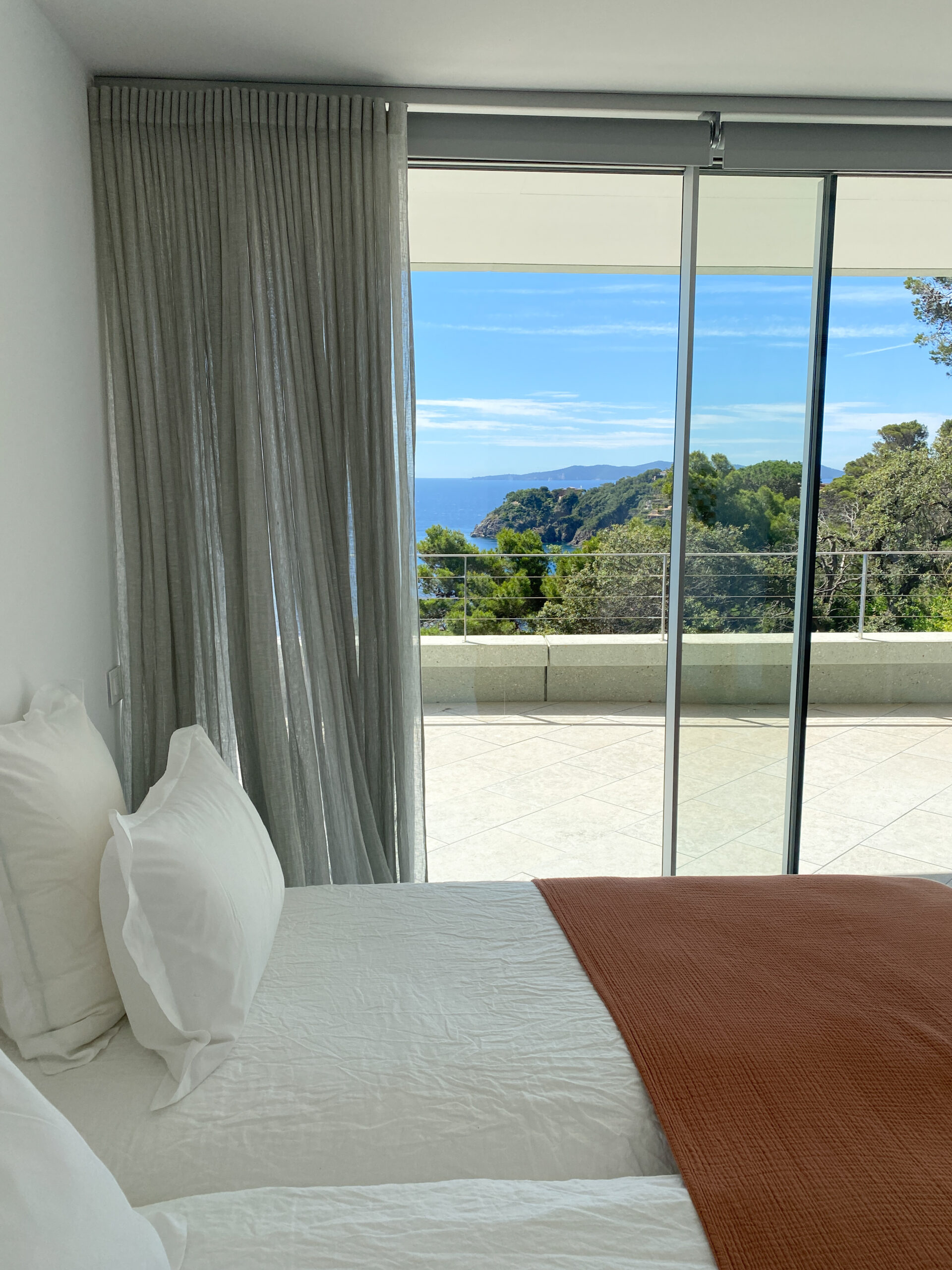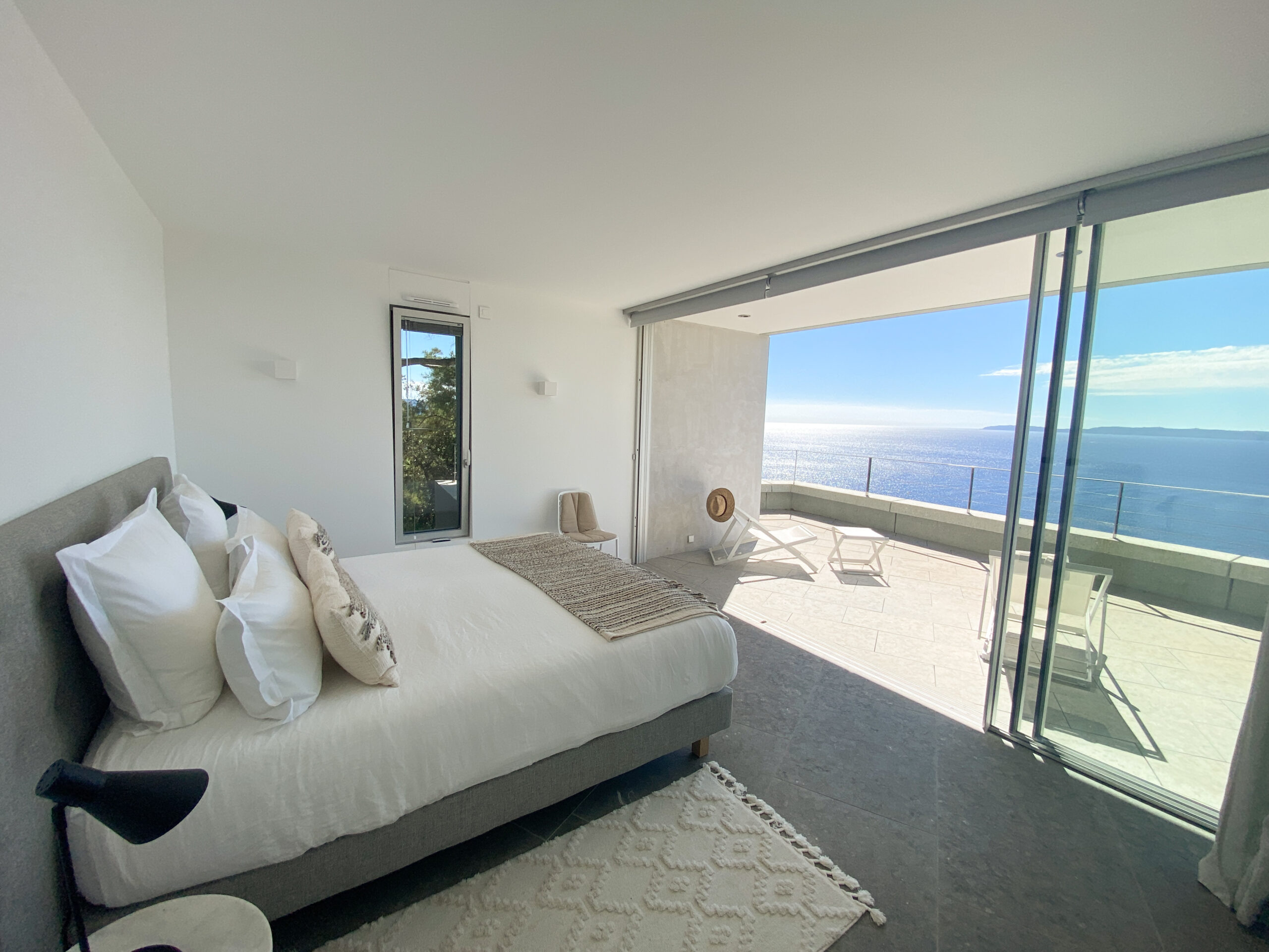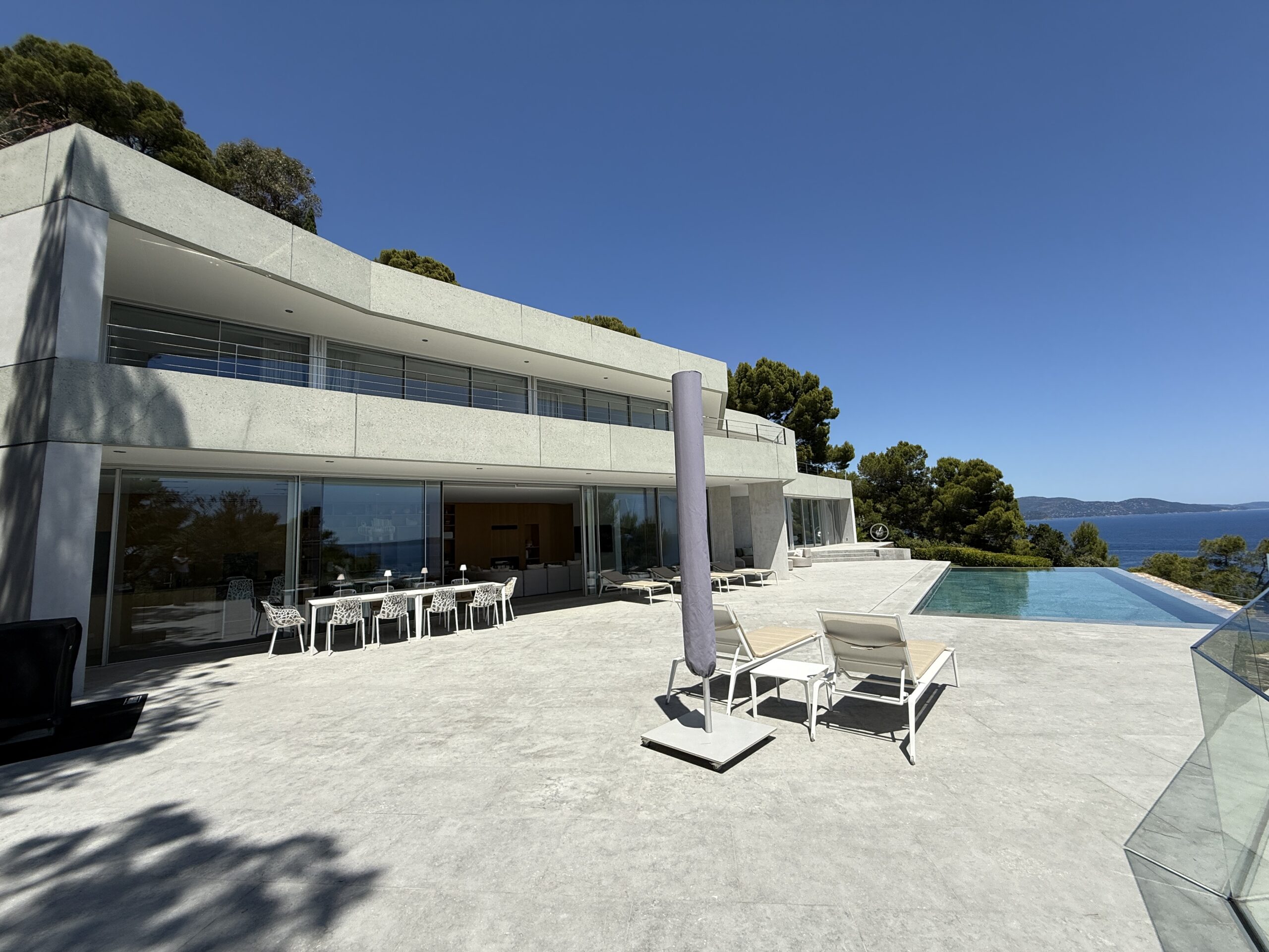 Discover Villa Olivine in Cap Bénat, a contemporary waterfront villa featuring high-end amenities, where spacious interiors, terraces, and a swimming pool open directly onto the Mediterranean Sea.