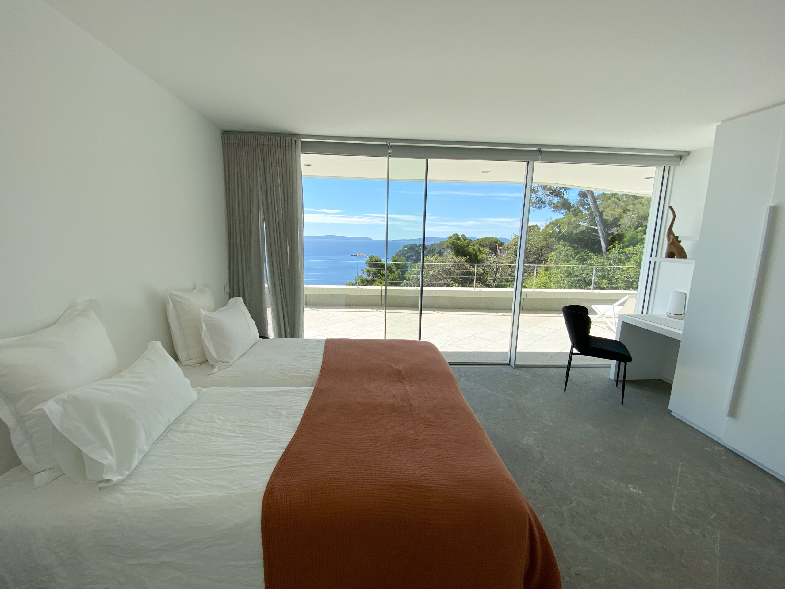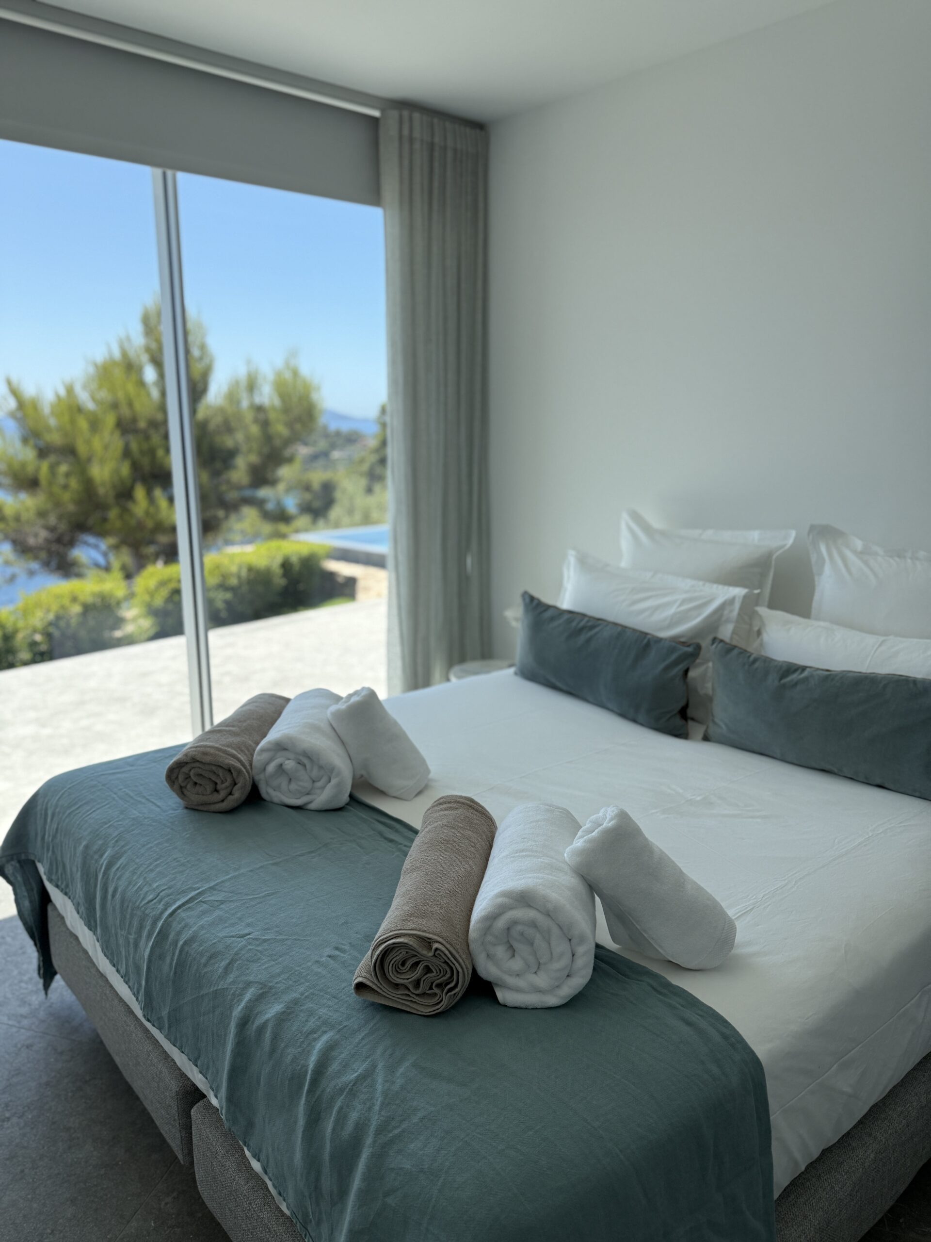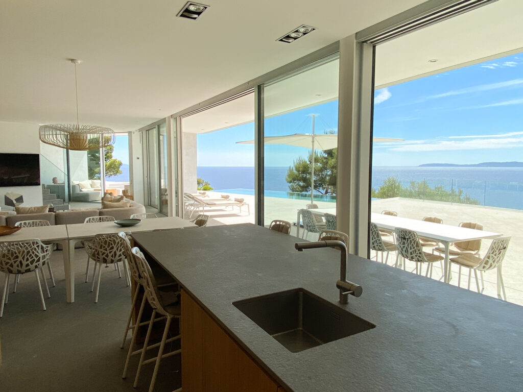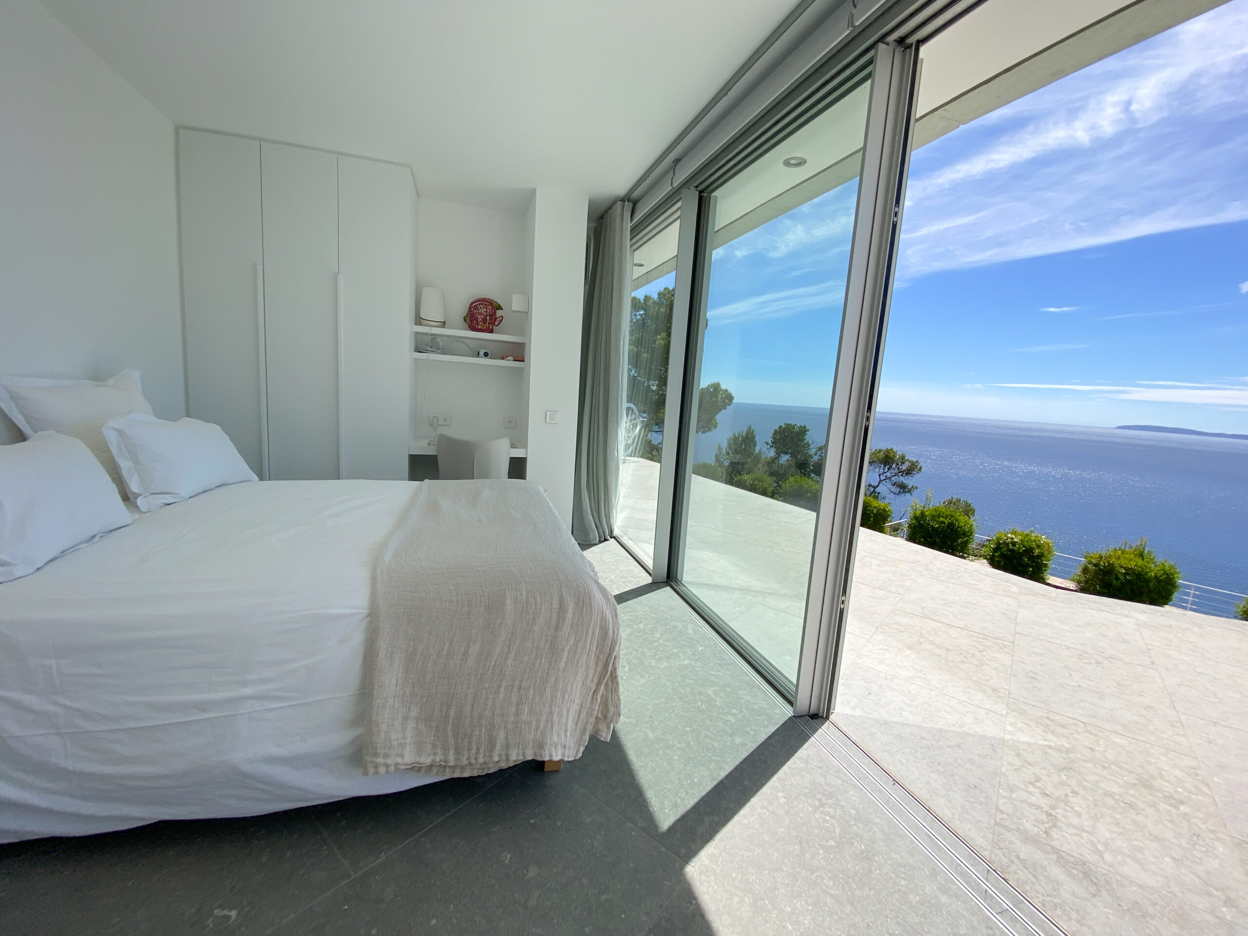 Discover Villa Olivine in Cap Bénat, a contemporary waterfront villa featuring high-end amenities, where spacious interiors, terraces, and a swimming pool open directly onto the Mediterranean Sea.