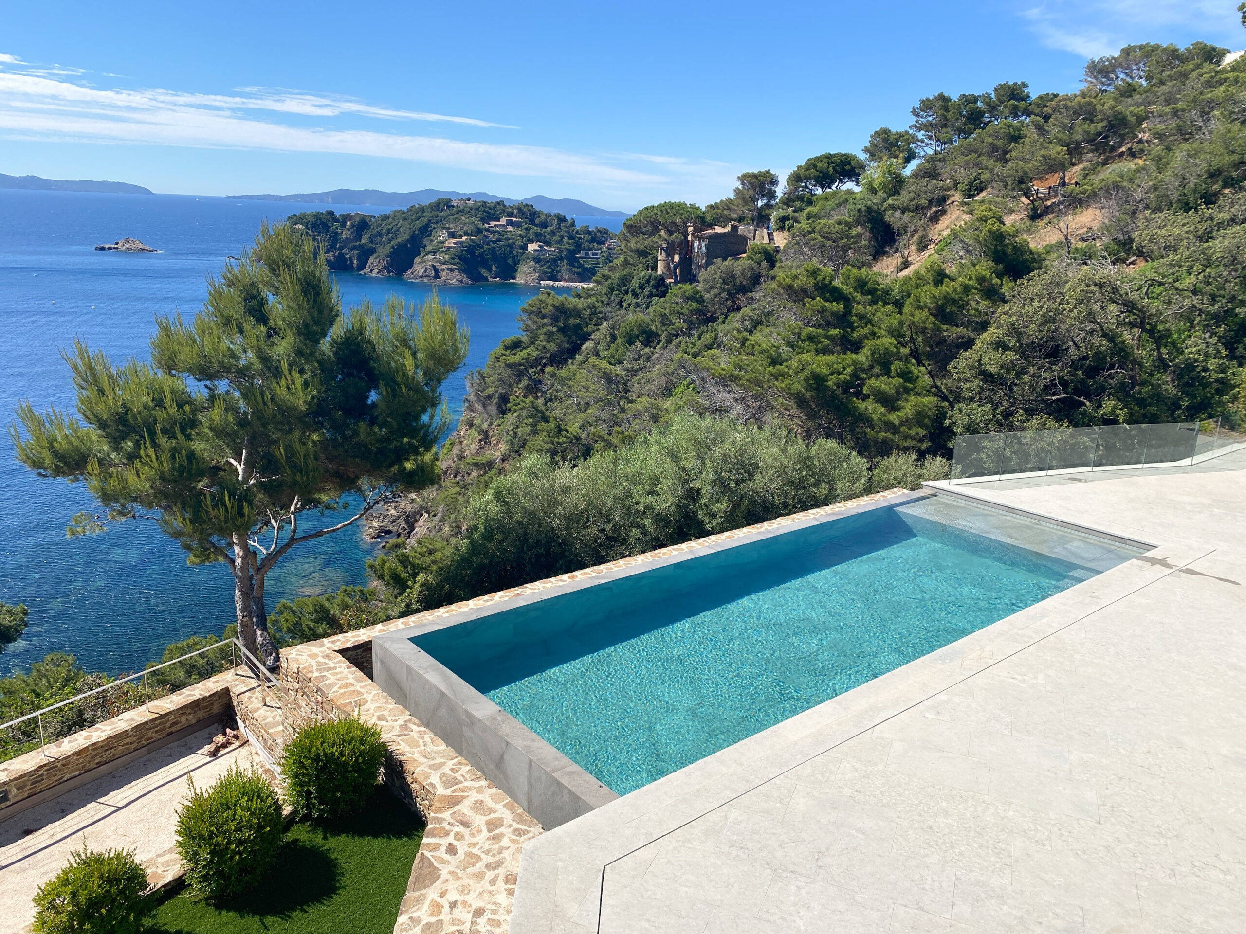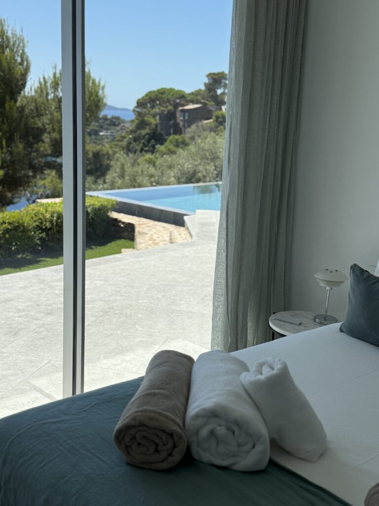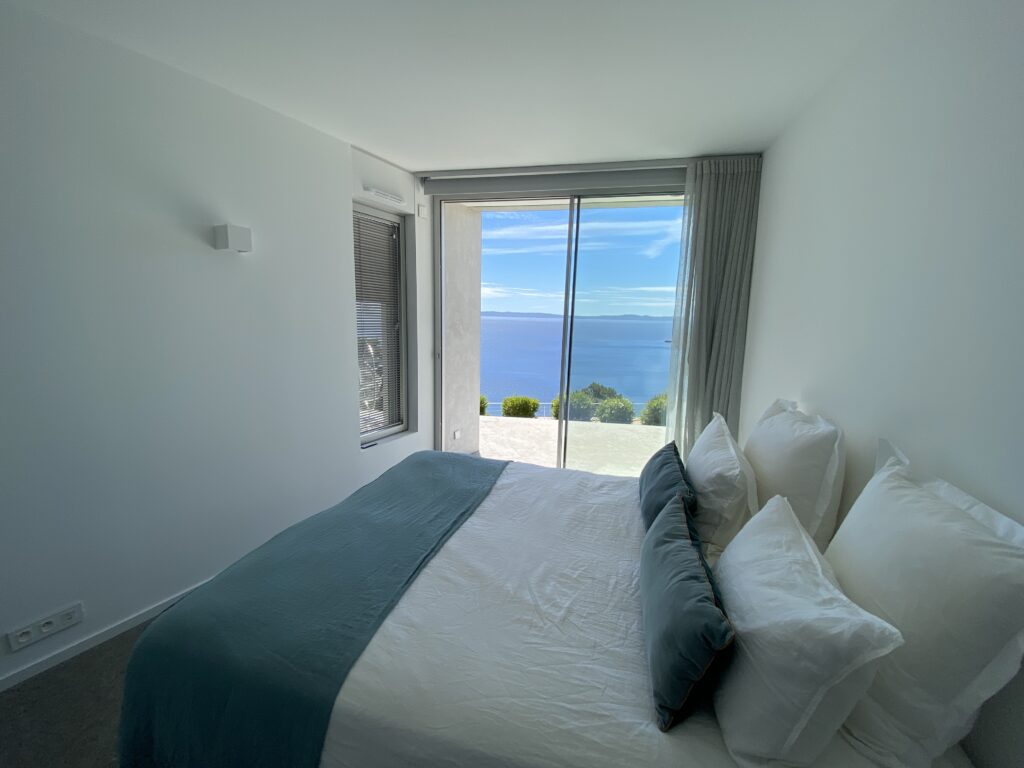 Découvrez la Villa Olivine au Cap Bénat, une villa contemporaine pieds dans l’eau aux prestations haut de gamme, où volumes, terrasses et piscine s’ouvrent directement sur la mer Méditerranée.